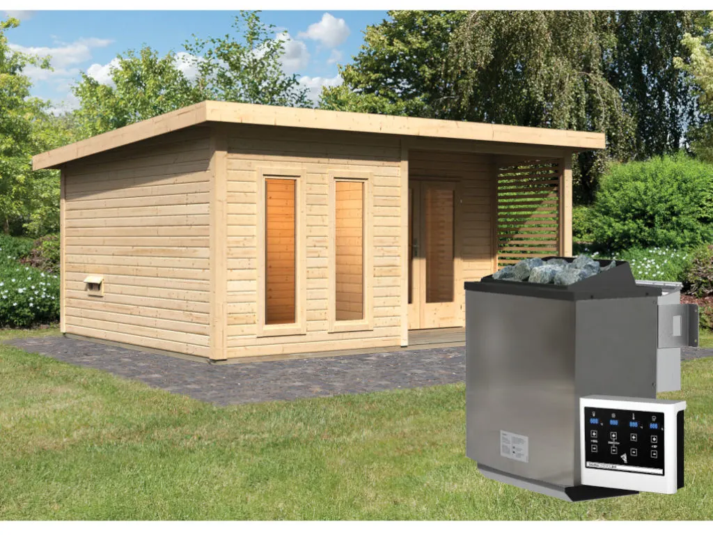 Unsere Wellnessartikel (Saunen, Saunahäuser, Saunafässer, Kotas, Infrarotkabinen, Saunaöfen etc.) dürfen nur für den privathäuslichen Gebrauch verwendet werden! Saunaöfen und dazugehörige Steuerelemente dürfen nur durch einen örtlich zugelassenen Elektroinstallateur mittels festem Anschluss an das Netz angeschlossen werden. Ausnahme: 230 Volt Plug-&-Play-Saunaöfen. Die Mindestsicherheitsabstände vom Ofen zur Wand und vom Ofen zum Ofenschutz müssen unbedingt eingehalten werden. Bei 9-kW-Öfen muss die Höhe des Ofenschutzes angepasst werden. Bitte beachte zu den obig genannten Hinweisen die beigefügten Montageanleitungen.