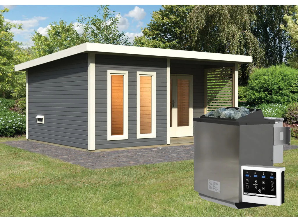 Unsere Wellnessartikel (Saunen, Saunahäuser, Saunafässer, Kotas, Infrarotkabinen, Saunaöfen etc.) dürfen nur für den privathäuslichen Gebrauch verwendet werden! Saunaöfen und dazugehörige Steuerelemente dürfen nur durch einen örtlich zugelassenen Elektroinstallateur mittels festem Anschluss an das Netz angeschlossen werden. Ausnahme: 230 Volt Plug-&-Play-Saunaöfen. Die Mindestsicherheitsabstände vom Ofen zur Wand und vom Ofen zum Ofenschutz müssen unbedingt eingehalten werden. Bei 9-kW-Öfen muss die Höhe des Ofenschutzes angepasst werden. Bitte beachte zu den obig genannten Hinweisen die beigefügten Montageanleitungen.