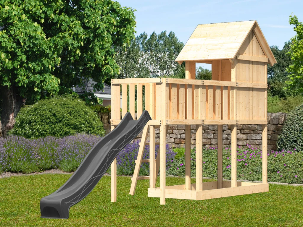 Spielturm Frieda naturbelassen inkl. Rutsche anthrazit + Anbauplattform