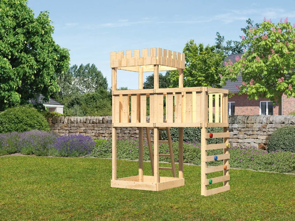 • Spielturm Löwenherz, inkl. Anbauplattform, Kletterwand