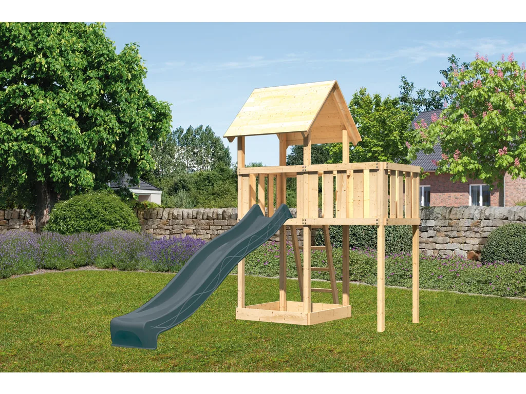 Spielturm Set Lotti naturbelassen inkl. Rutsche anthrazit + Anbauplattform