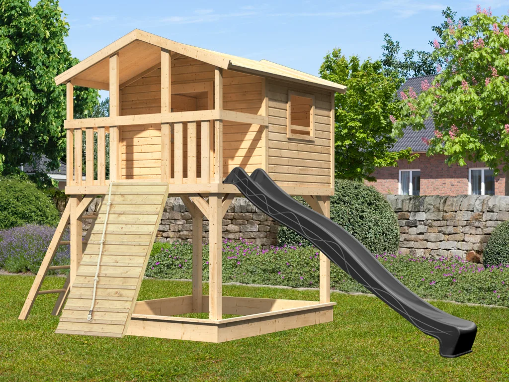 Stelzenhaus Benjamin SET 19 mm naturbelassen inkl. Rutsche anthrazit + Holzrampe