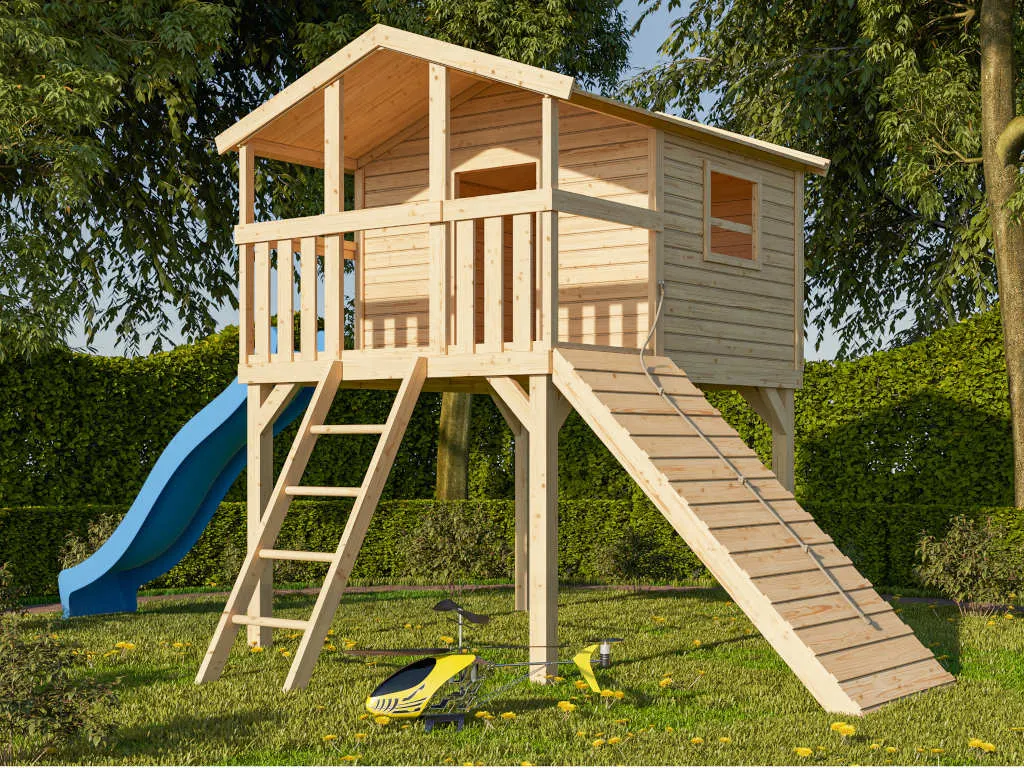 Stelzenhaus Benjamin SET 19 mm naturbelassen inkl. Rutsche blau und mehr