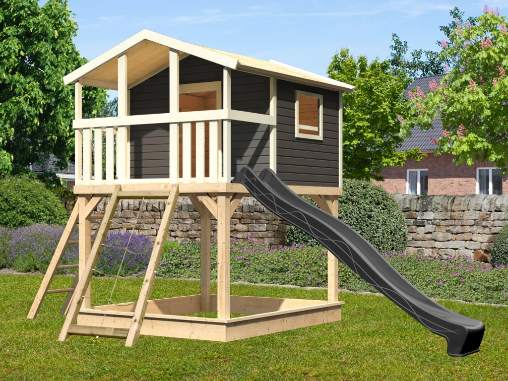 Stelzenhaus Benjamin SET 19 mm terragrau inkl. Rutsche anthrazit + Netzrampe
