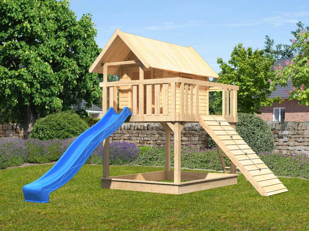 • Stelzenhaus Fidel, inkl. Wellenrutsche 3m blau, Holzrampe