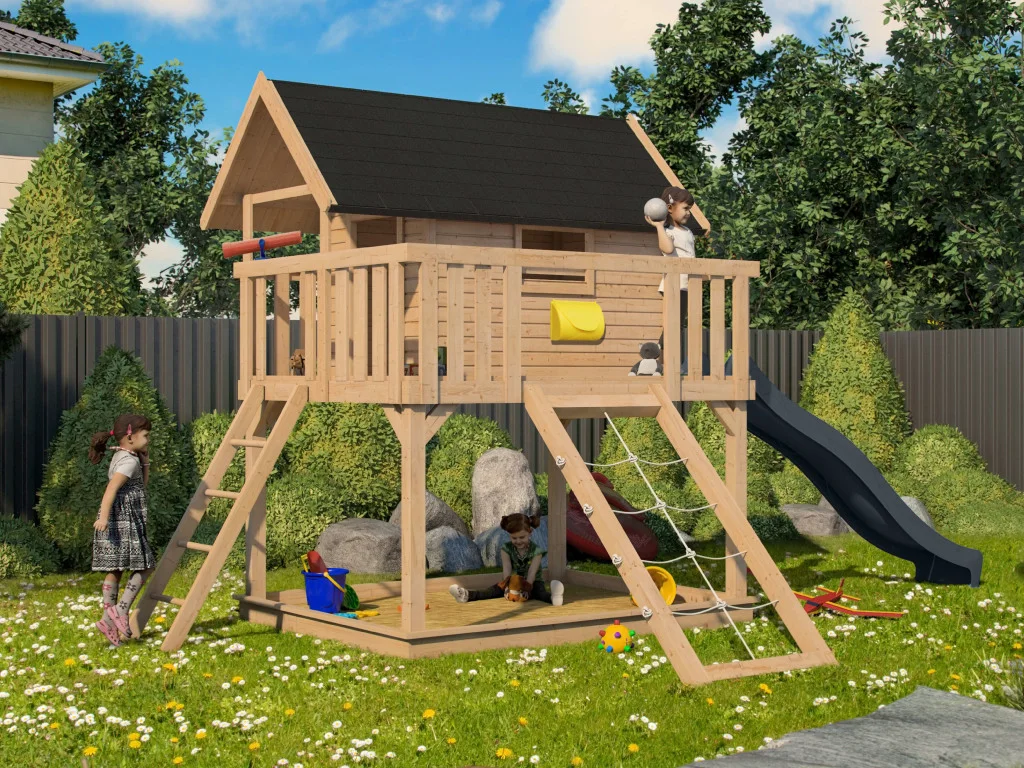 Stelzenhaus SET Fidel naturbelassen inkl. Rutsche anthrazit + Netzrampe