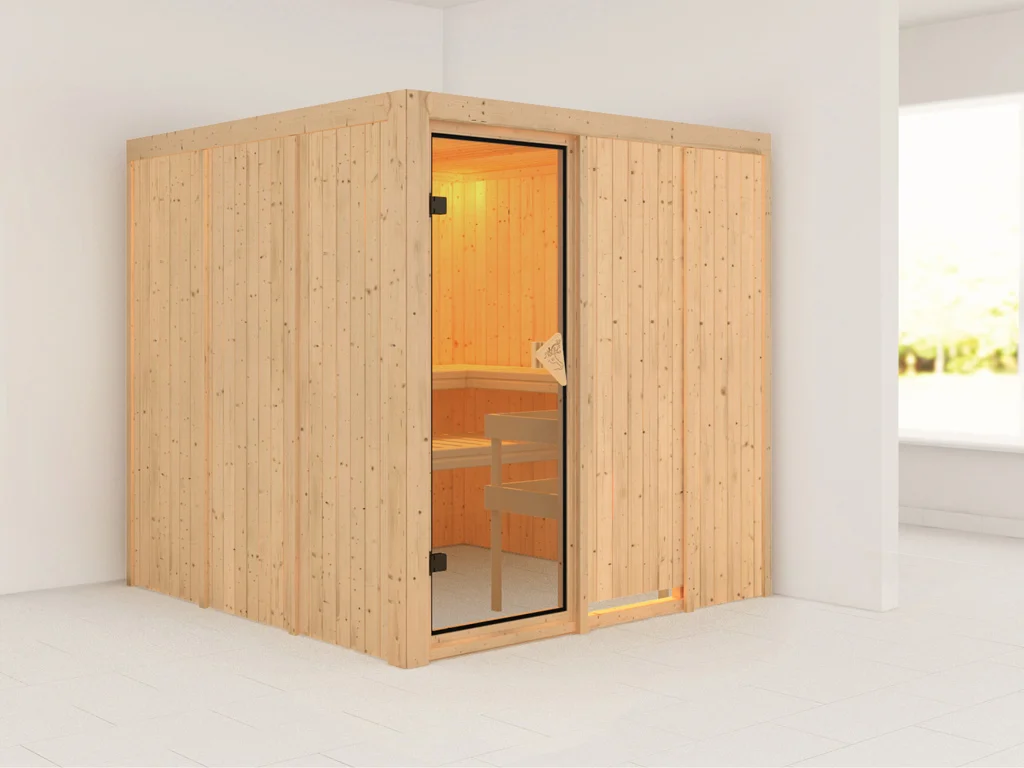 Dieses Saunamodell – eine System- bzw. Elementsauna – zeichnet sich durch seine besondere Sandwich-Bauweise aus, d.h. die Wandelemente bestehen aus einzelnen Schichten. Die bereits vorgefertigten Wandelemente ermöglichen einen schnellen Aufbau innerhalb weniger Stunden.