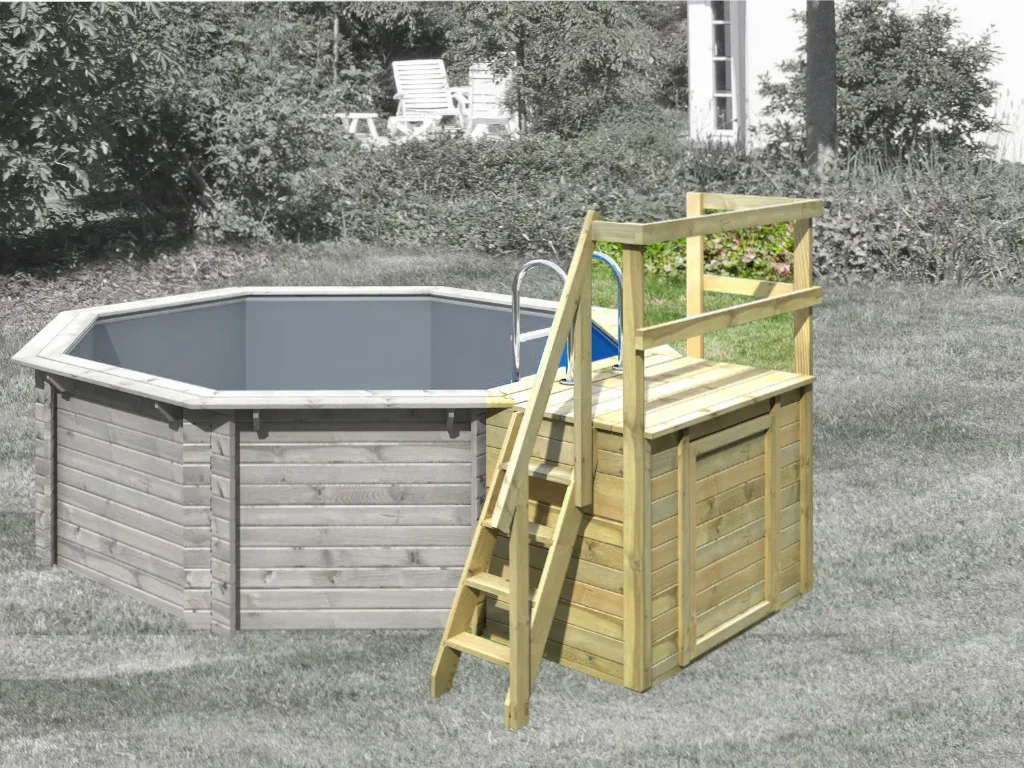 Mit der Karibu Poolterrasse kann Deine Urlaubsoase in kürzester Zeit nun perfektioniert werden. Der Pool-Anbau besteht aus hochwertigem Massivholz und kommt in entsprechender Naturoptik. Dadurch kann er perfekt in Deine bestehende Garten- oder Poollandschaft integriert werden. Die Oberfläche der Terrasse ist kesseldruckimprägniert. Somit hält das Material sowohl gutem als auch schlechtem Wetter stand, was Dir viele fröhliche Sommertage garantiert und die Langlebigkeit der Terrasse unterstreicht.