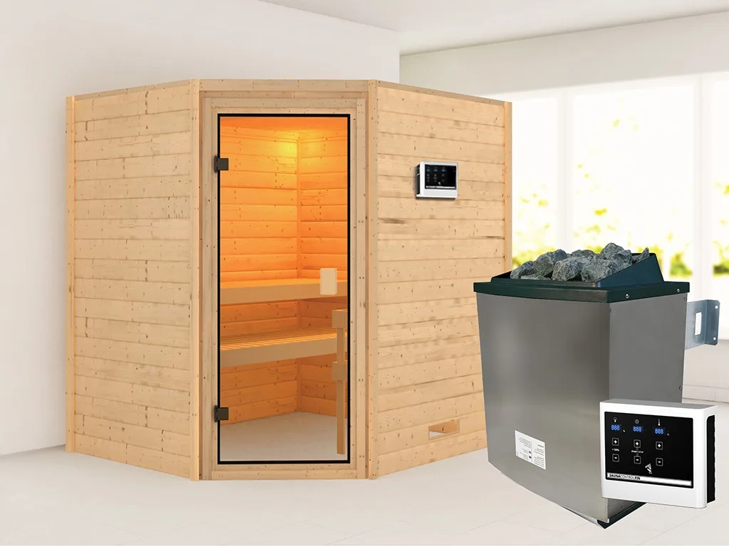 Sauna Massivholzsauna Mia, inkl. 9 kW Ofen mit externer Steuerung