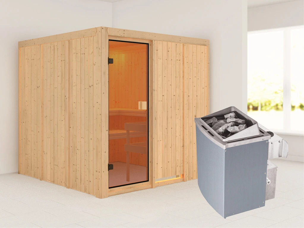 Sauna OULU - Celine 4 mit bronzierter Glastür + 9 kW Saunaofen integr. Strg.
