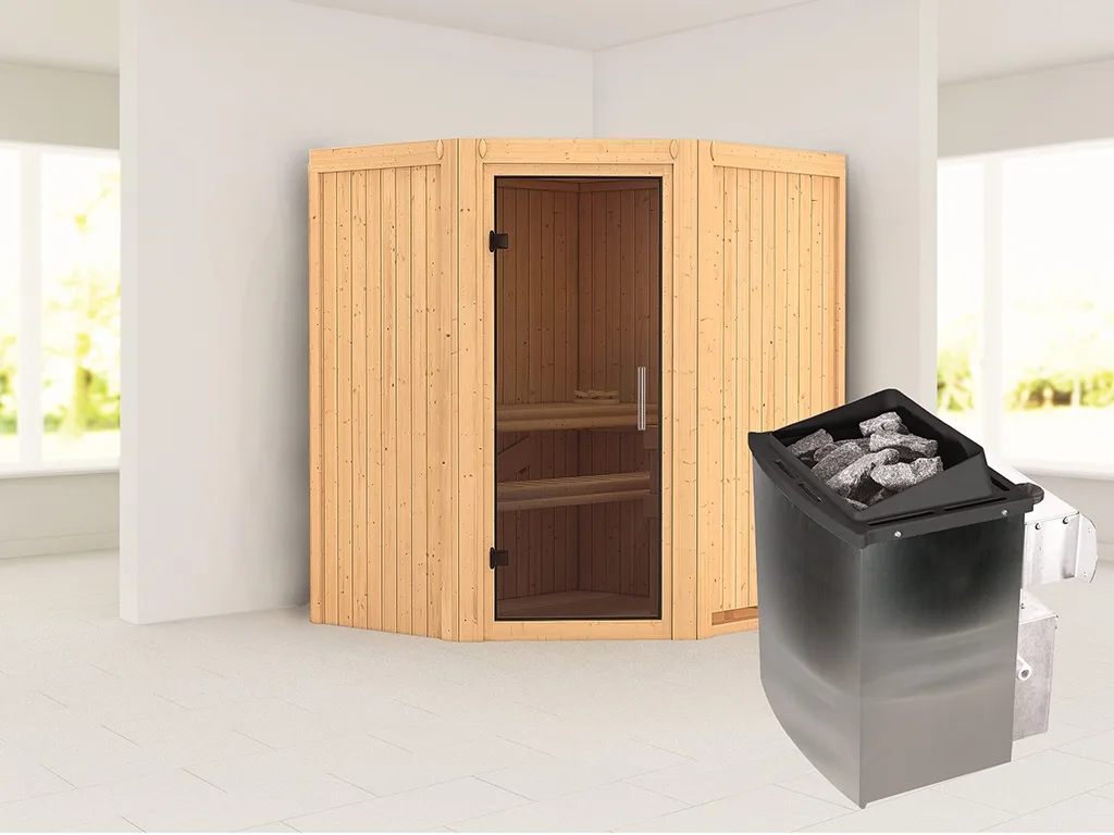 Unsere Wellnessartikel (Saunen, Saunahäuser, Saunafässer, Kotas, Infrarotkabinen, Saunaöfen etc.) dürfen nur für den privathäuslichen Gebrauch verwendet werden! Saunaöfen und dazugehörige Steuerelemente dürfen nur durch einen örtlich zugelassenen Elektroinstallateur mittels festem Anschluss an das Netz angeschlossen werden. Ausnahme: 230 Volt Plug-&-Play-Saunaöfen. Die Mindestsicherheitsabstände vom Ofen zur Wand und vom Ofen zum Ofenschutz müssen unbedingt eingehalten werden. Bei 9-kW-Öfen muss die Höhe des Ofenschutzes angepasst werden. Bitte beachte zu den obig genannten Hinweisen die beigefügten Montageanleitungen.