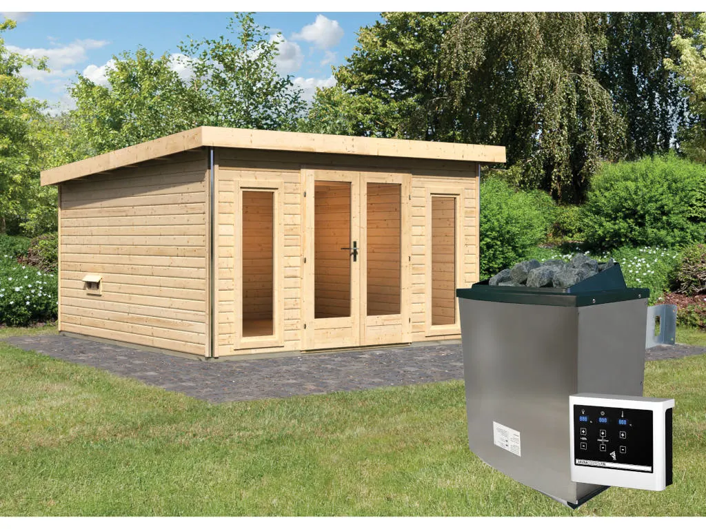 Unsere Wellnessartikel (Saunen, Saunahäuser, Saunafässer, Kotas, Infrarotkabinen, Saunaöfen etc.) dürfen nur für den privathäuslichen Gebrauch verwendet werden! Saunaöfen und dazugehörige Steuerelemente dürfen nur durch einen örtlich zugelassenen Elektroinstallateur mittels festem Anschluss an das Netz angeschlossen werden. Ausnahme: 230 Volt Plug-&-Play-Saunaöfen. Die Mindestsicherheitsabstände vom Ofen zur Wand und vom Ofen zum Ofenschutz müssen unbedingt eingehalten werden. Bei 9-kW-Öfen muss die Höhe des Ofenschutzes angepasst werden. Bitte beachte zu den obig genannten Hinweisen die beigefügten Montageanleitungen.