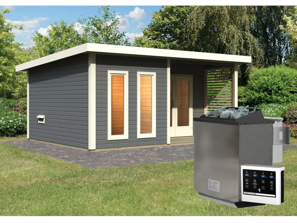 Unsere Wellnessartikel (Saunen, Saunahäuser, Saunafässer, Kotas, Infrarotkabinen, Saunaöfen etc.) dürfen nur für den privathäuslichen Gebrauch verwendet werden! Saunaöfen und dazugehörige Steuerelemente dürfen nur durch einen örtlich zugelassenen Elektroinstallateur mittels festem Anschluss an das Netz angeschlossen werden. Ausnahme: 230 Volt Plug-&-Play-Saunaöfen. Die Mindestsicherheitsabstände vom Ofen zur Wand und vom Ofen zum Ofenschutz müssen unbedingt eingehalten werden. Bei 9-kW-Öfen muss die Höhe des Ofenschutzes angepasst werden. Bitte beachte zu den obig genannten Hinweisen die beigefügten Montageanleitungen.